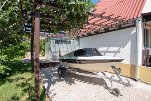 A vízellátás vezetékes vízről történik, de van egy fúrt kút is házi vízművel amire akár a locsolót is rá lehet kötni.