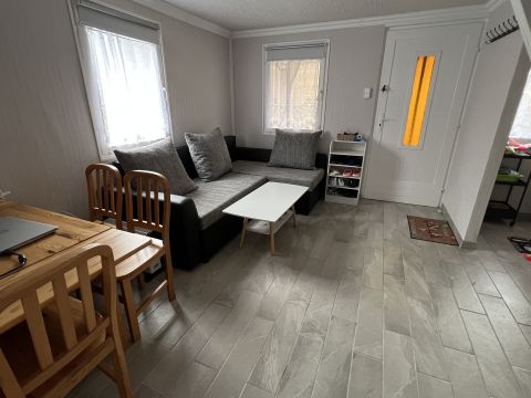 Az ingatlan belső burkolatai ki lettek cserélve, lent járólapra az emeleten laminált padlóra.