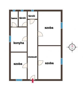 A vegyes falazatú, három szoba, konyha, kamra,tároló elrendezésű családi ház 670 m2-es telken fekszik.