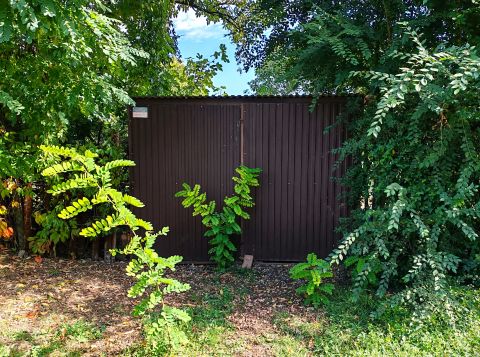 A 2176 m²-es, összközműves telek tágas, a főépületen kívül egy melléképület és könnyűszerkezetes garázs is található rajta.