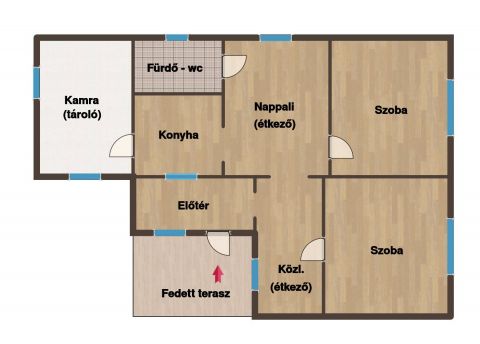 Az ingatlan nappali + 2 szobás, fűtése konvektorral és klímával megoldott. A fedett terasz kellemes kertkapcsolatot biztosít, tökéletes pihenésre vagy baráti összejövetelekhez.