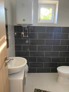Meleg víz szolgáltatását minden fürdőszobában villanybojler biztosítja.