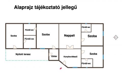 Helyiségek:4-szoba, nappali, konyha-étkező, 4 fürdöszoba-wc .