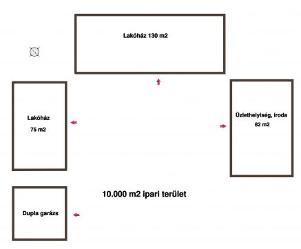 A telek területe egész pontosan 10.000 m2, ami teljesen körbekerített, így biztosítva a privát szférát és biztonságot. A hely adottságainak köszönhetően a komplexum remekül alkalmazkodik különböző vállalkozások, például mezőgazdasági tevékenységek, raktározás vagy akár vendéglátás igényeihez is.