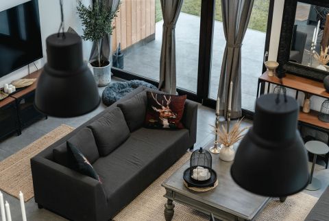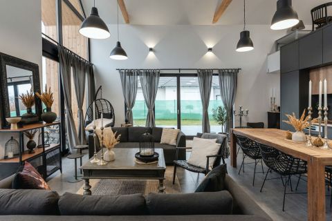 A kertkapcsolatos nappali közvetlen hozzáférést biztosít a külső terekhez: a tágas teraszokhoz, az öntözőrendszerrel ellátott udvarhoz és a grillezőhöz.