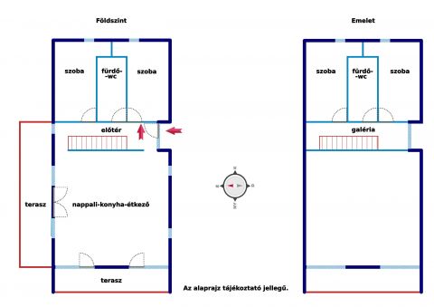 A kétszintes ingatlan nettó 107 négyzetméter alapterületű. Elosztását tekintve átgondolt; világos terek jellemzik: a tágas, galériás amerikai konyha - nappali - étkezővel biztosítja a társasági élet központját, valamint a mindkét szinten megtalálható 2-2 hálószoba és 1-1 fürdőszoba wc-vel lehetővé teszik a praktikus és kényelmes életvitelt.
