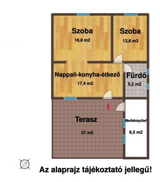Amerikai konyhás nappali + 2 külön nyíló szoba