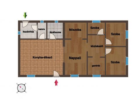 Eladó Felsőlajoson egy napfényes, tégla építésű családi ház, amely 120 m²-es lakóterületet kínál nappalival és négy szobával, mindezt egy 2400 m²-es telken. Az ingatlan beton alapra épült, és könnyű ytong válaszfalakkal lett ellátva, így biztosítva a tartósságot és a minőséget. A ház kiváló elosztású és kényelmes életteret biztosít a család minden tagjának.