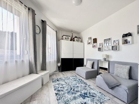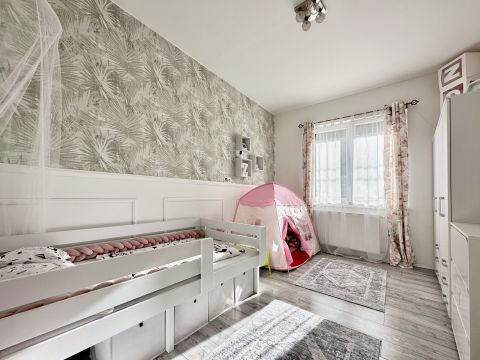 A ház minimál stílusa és tágas, világos belső terei igazi otthonná varázsolják az ingatlant, amihez kapcsolódik egy 32m2-es részben fedett terasz, amely igény szerint beépíthető, ezáltal a nappali mérete jelentősen növelhető.