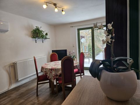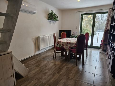 Infrastruktúra: Buszmegálló és komp 5 perc séta. Saját fúrt kút házi vízművel, villany bekötve.