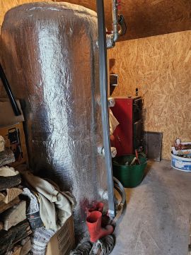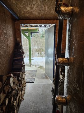 Gazdaságos fűtés: Fatüzelésű kazán 1000 literes puffertartállyal (tartós meleg), kiegészítve távolról vezérelhető hűtő-fűtő klímával.
