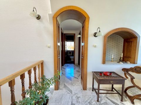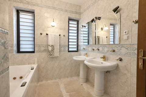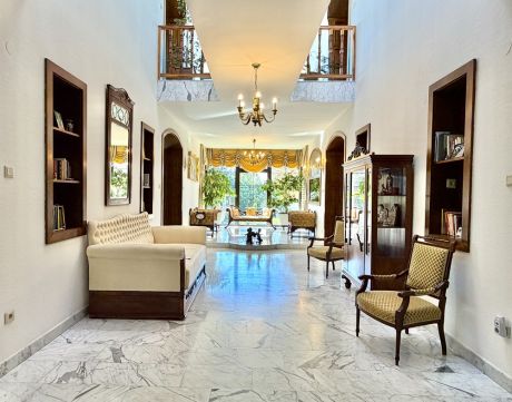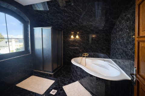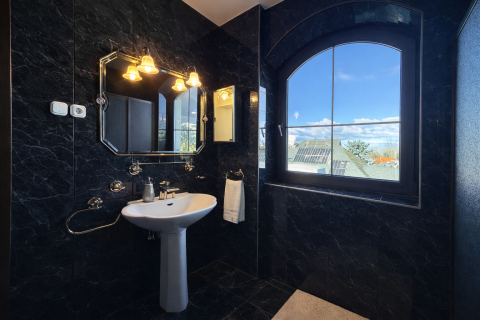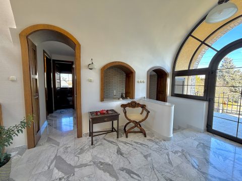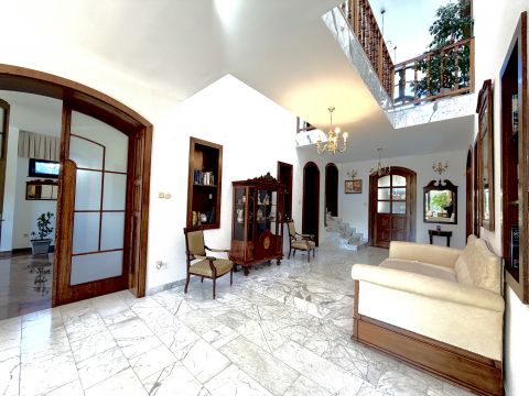 A belső terek eleganciája és arányossága már az első pillanatban magával ragad. A világos, nagyvonalú terek, az íves nyílások és a természetes anyaghasználat időtálló harmóniát teremtenek. A márványburkolatok és a teljes házat átszövő padlófűtés egyenletes, kellemes komfortérzetet biztosítanak. A kertkapcsolatos nappali életterek nyitottak és világosak, míg a hálószobák nyugodt, elkülönülő zónákban kaptak helyet. Az akvárium különleges, megnyugtató atmoszférát kölcsönöz az otthonnak.
