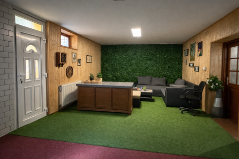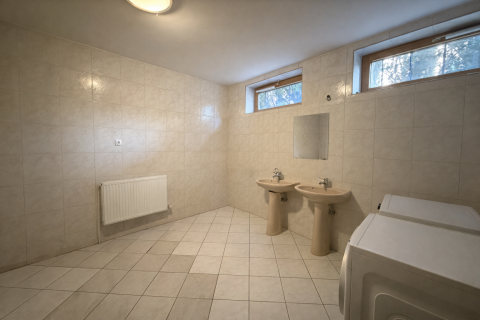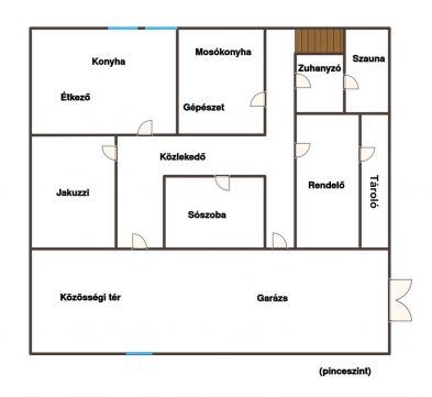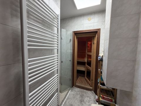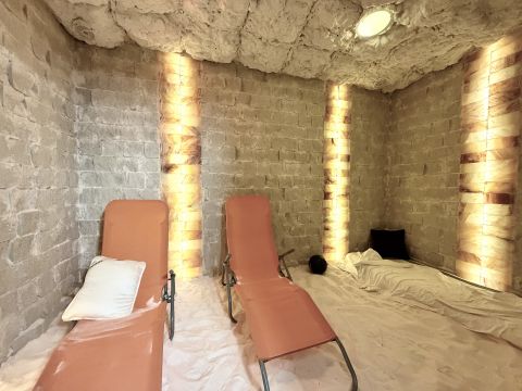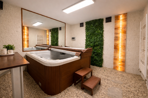 Az ingatlan legalsó szintjén egy exkluzív, privát wellness részleg került kialakításra, amely a mindennapi regenerálódás tökéletes színtere. A különálló jakuzzi szoba igényes kialakítású, apró kavicsos padló és falba épített sótéglákkal, amelyek egyedülálló hangulatot és egészségtudatos környezetet teremtenek. A szauna szoba saját zuhannyal és törölközőszárítóval felszerelt, így a teljes wellness élmény kényelmesen, kompromisszumok nélkül élvezhető. A különálló sószoba valódi ritkaság: nem csupán sóval feltöltött tér, hanem teljes egészében sótéglákkal burkolt falakkal kialakított helyiség, amely ideális a pihenéshez és a légúti regenerációhoz.