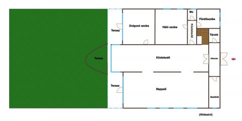 Ezen a szinten helyet kapott egy rendelőnek kialakított szoba is, amely kiválóan alkalmas egészségügyi, terápiás, szépségápolási vagy akár otthoni irodai funkcióra is.