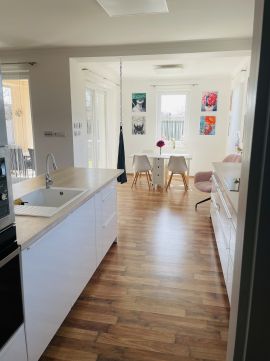 Nyugodt, családi házas környezet, tágas és világos terekkel.