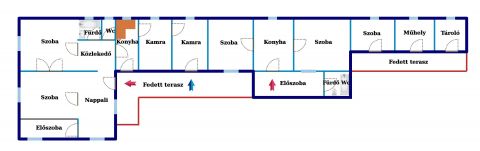 A ház két különálló lakrészből áll, melyeknek saját helyrajzi számuk van. Fontos kiemelni, hogy az ingatlant kizárólag egyben lehet megvásárolni, így az új tulajdonos teljesen szabadon rendelkezhet mindkét lakrész felett.