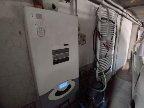 A fűtés Ariston kondenzációs, illetve vegyes tüzelésű kazánnal is megoldott. A melegvizet villanybojler szolgáltatja. Réz villanyvezetékek vannak 3X16 Amper ellátással.