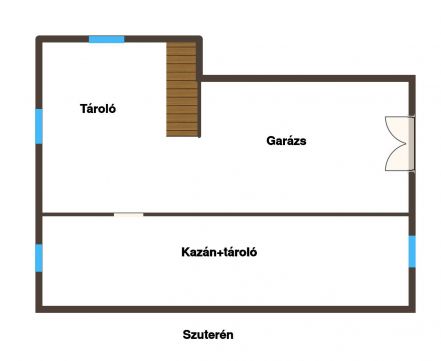A szuterén szinten garázs, kazán helyiség, illetve egyéb nagy terekkel rendelkező terek kaptak helyet, mely különféle elfoglaltságnak adhat helyet. A szuterén is fűtött!