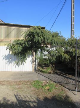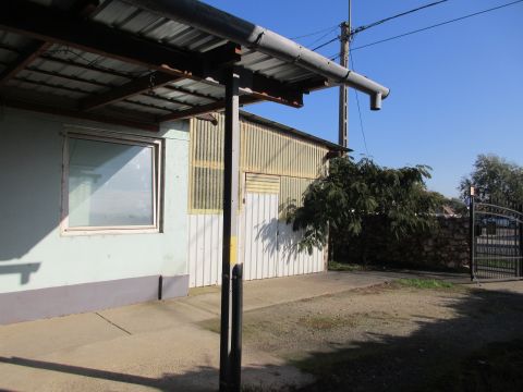 A nagy telken a lakóház előtt lemezből készült műhely,