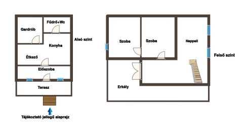A 81 nm-es ház jól alakítható: a földszinten konyha-étkező, fürdő és egyéb helyiségek, az emeleten nappali és két szoba található.