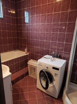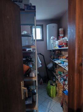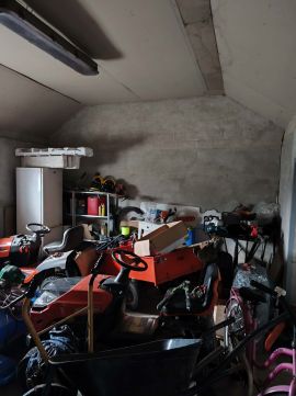 A házból közvetlen elérhető a kazánház és a garázs is. A garázs fűthető, amit szintén a lakással együtt egy pelletes kazán lát el.