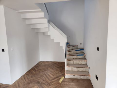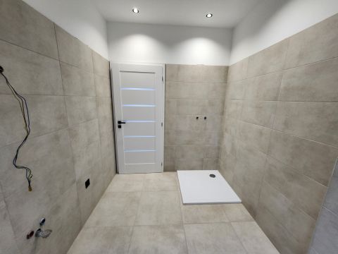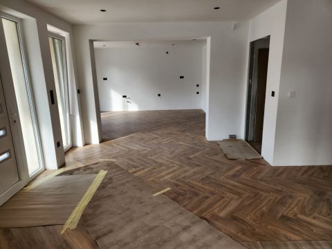 helyiségenként TV -internet kiállás, 4-5 konnektor aljzat (Legrand), spot lámpa, közös helyiségben függeszték kialakítás