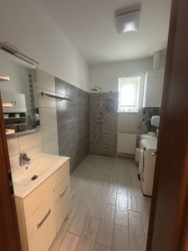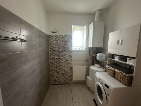 Két fürdőszoba, mindkettő WC-vel, az egyik tusolóval és mosókonyhai funkcióval, a másik káddal.