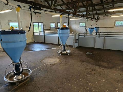 Épületek: Komplett lakóház (2 szoba, 2 fürdőszoba, 2 konyha, kamra, 3 tároló) + sertéshizlalda ( 100 db sertés hizlalására alkalmas, + 3 db terménytároló, tárolóhelyiségek, trágyatároló)