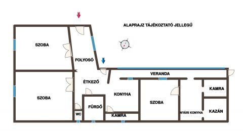 Helyiségek: 3 szoba, előszoba, konyha, spájz, fürdőszoba, külön WC, kazánház.