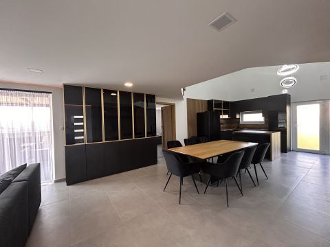 Közösségi tere tágas, konyhai berendezése magas minőségű bútort és gépezetet kapott, ez is ugyanúgy mint a ház többi része még érintetlen, vadonatúj, a ház első lakóit várja!