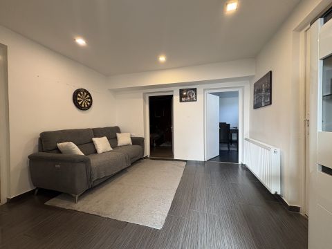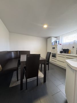 félszuterén szint: világos konyha, étkező és nappali, jól átgondolt és felújított fürdőszoba és mellékhelyiség, valamint 2 önállóan zárható, élhető méretű hálószoba,