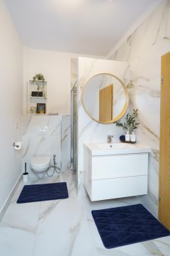 A ház minden részletében a kényelem és az elegancia találkozik. Az alsó szinten található amerikai konyhás nappali tágas, 46 m²-es terével és hatalmas ablakain keresztül lenyűgöző kilátást nyújt a Testvérhegyre. Innen léphetünk ki a 35 m²-es teraszra, ahol a reggeli kávézás és az esti naplemente alatt is gyönyörködhet a tájban.