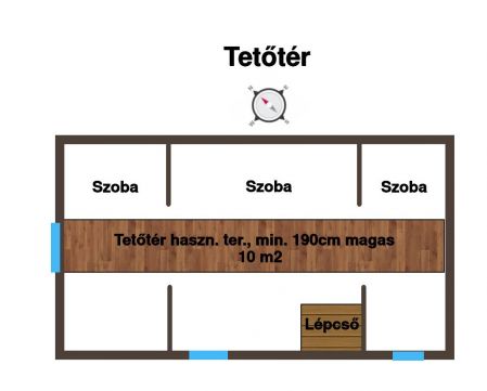 - 60 m² hasznos terület (a tetőtérnek csak a 190 cm-nél magasabb részét számítottuk ebbe bele, az élhető tér ennél még nagyobb!)