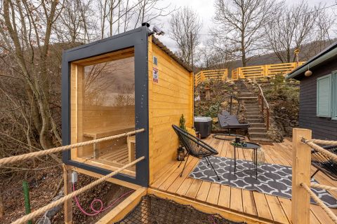 Eladó egy új építésű, egyedi tervezésű erdei ház a Dunakanyar szívében Esztergom és Búbánatvölgy között!