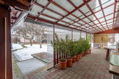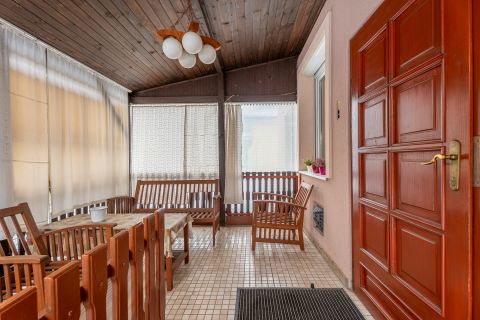 A főépület tágas, jól tagolt elrendezésű, 4 szobával, külön tárolóval, valamint egy 5,3 m2-es, száraz pincével rendelkezik. Kapcsolódik hozzá egy nagyobb fedett terasz, amely ideális családi összejövetelekhez. Fa födémmel rendelkezik az épület, igény esetén beépíthető tetőtérrel, kifogástalan állapotú tetővel. Az épület homlokzata 5 cm szigetelést kapott, a nyílászárók mindenhol cserélve lettek, több helyiségben redőnnyel és szúnyoghálóval felszerelve.
