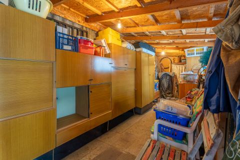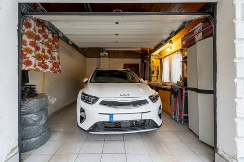A melléképületben konyha, szoba, garázs és külön tároló kapott helyet. A közművek könnyen bővíthetők, így fürdőszoba is egyszerűen kialakítható, aminek köszönhetően az ingatlan akár két önálló lakóegységként is funkcionálhat.