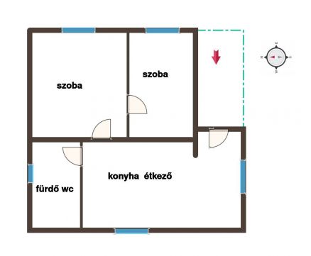 A kb. 60 m2-en kialakításra került 2 szoba, konyha étkezővel, fürdő wc-vel.