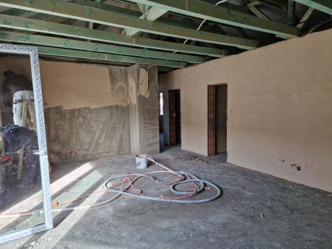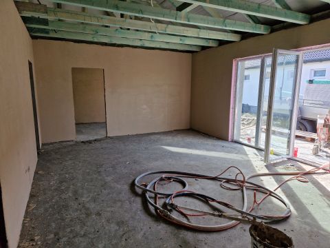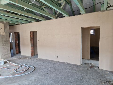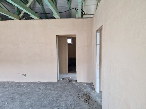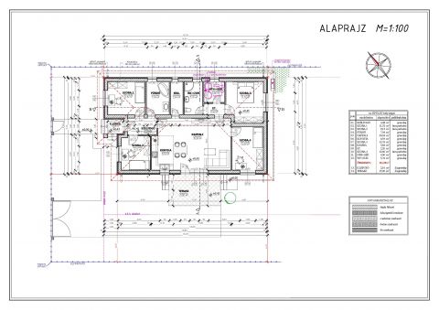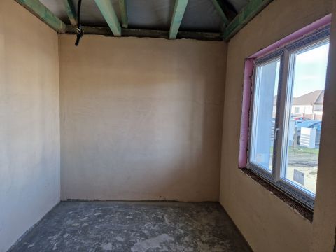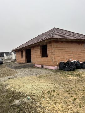 A ház vasalt beton alapra épül 30-as Porotherm falazóblokkból, fagerendás födémmel, gipszkarton álmennyezettel. A szigetelés grafitos homlokzati szigetelés, ásványgyapot födém szigetelés.
