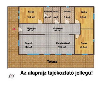 Amerikai konyhás nappali + 3 külön nyíló szoba