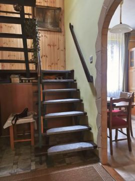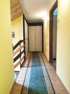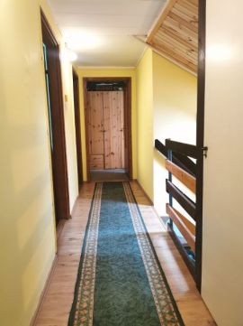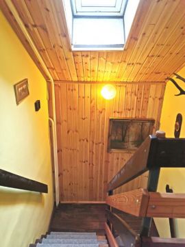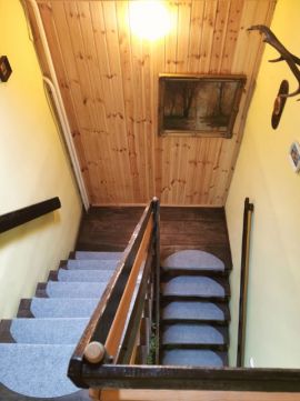 Az emeletre egy kellemes fa lépcsőzet vezet fel, ahol egy széles folyosó segíti a közlekedést.