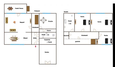 A földszinti részen egy előszoba fogad minket, innen nyílnak a helységek.