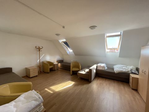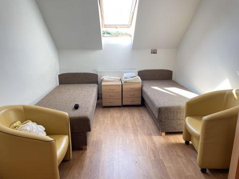 A tetőtérben 14 vendégszoba található, ezen a szinten közös tágas konyha és 2 fürdőblokk (férfi illetve női) áll rendelkezésre.