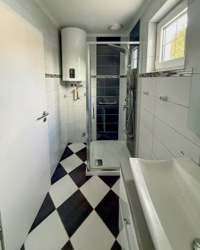 2. ház: 25 nm alapterületű, nappali, hálófülke, zuhanyzós fürdőszoba, konyha-előtér, külső tároló.