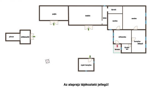 A lakóház teljeskörű felújítást igényel, csak úgy mint az udvarban rendelkezésre álló gazdasági épülketek és a nyári konyha is. A lakóépületben két szoba, konyha-étkező, előszoba és fürdőszoba-wc lett kialakítva. A lakóház folytatásában épült gazdasági épület (istálló és pajta) felújítás után akár a lakóház bővítéseként nagyobb család meleg otthonaként is üzemelthet.