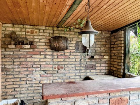A konyhából közvetlen kijárat nyílik a hátsó teraszra, ahol grillezéshez, baráti és családi összejövetelekhez kialakított rész található ideális helyszín a közös időtöltéshez.