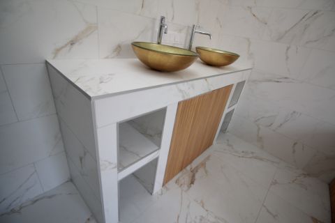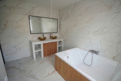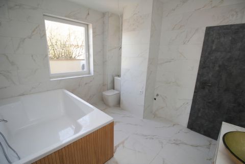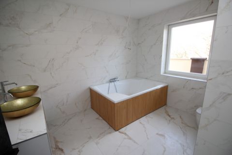 A belső tereket gyönyörű dekorfalak és magas minőségű, gondosan kiválasztott burkolatok teszik igazán elegánssá. A teraszok időjárásálló WPC burkolattal készültek, amelyek tartós és esztétikus megoldást biztosítanak.