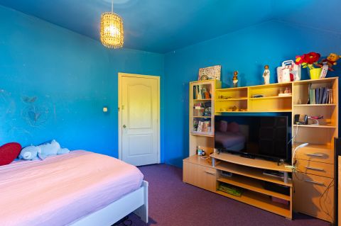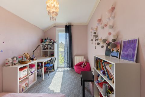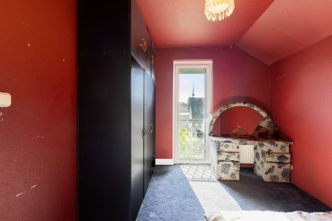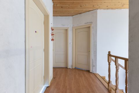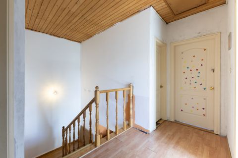 Az emeleten 4 egész szoba és egy sarokkáddal szerelt fürdő + WC helyiséget találunk. Az általános állapot itt is az építéskorabeli. Minden szoba 10 nm fölött van, az udvari nézetű helyiség 13 nm-es. Jól élhető, világos, kellemes méretű szobákról beszélhetünk. Itt a belmagasság 2,7 méter.