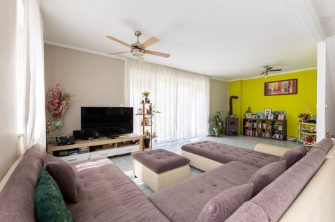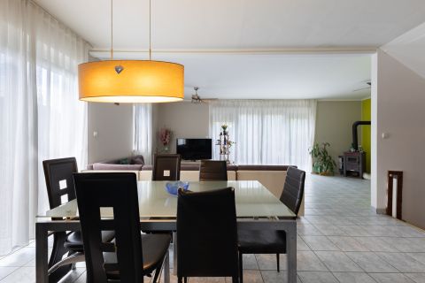 Az épület fűtéséről turbós Buderus kazán gondoskodik, a hőleadók lapradiátorok, de padlófűtés is kiépítésre került. A használati meleg víz-ellátást Ariston okos bojler biztosítja. - A nappali szomszéddal közös falában, aktív kémény üzemel, melybe fa tüzelésű kályha lett bekötve. Lehetőség van kandalló kialakítására is.