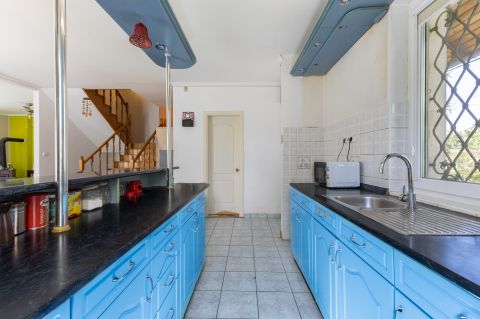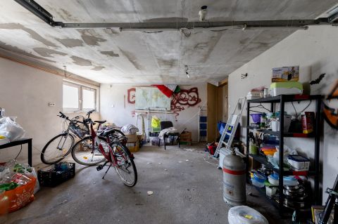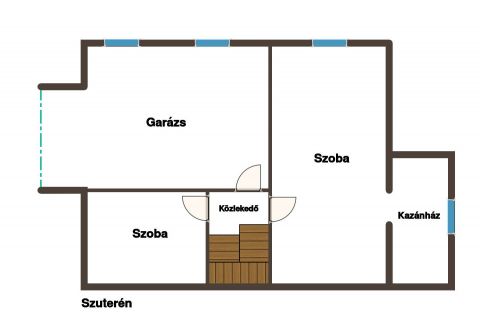 Autóval az utca felől, az előkerten át, juthatunk a szuterén garázsába. Gyalogosan a földszint felől, a három szintet összekötő lépcsőn haladva közelíthetjük meg. Alapterületén kialakításra került a 28 nm-es garázs, egy 26 nm-es, valamint egy 11 nm-es szoba és a terasz alatt található kazánház. Minden helyiség fűtött, a belmagasság 2,2 méter. Ezen a szinten az ablakokon biztonsági rács van, de még építéskorabeli nyílászárók.