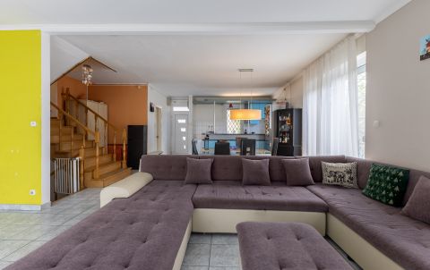 Eladó a XVIII. kerület legkeresettebb részén, a Szent Imrekertvárosban, 312 m2-es telken, egy 2000-ben épült, 3 szintes, 210 nm-es ikerház fél. Dryvitos szigetelés, napelem, új nyílászárók, 58 nm-es amerikai konyhás nappali!